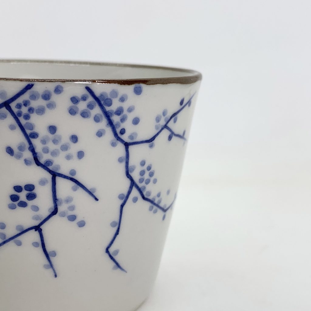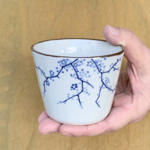 染付の梅の絵は、近所の智積院の梅林で描いたスケッチから選んだデザインです。